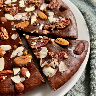 - Faire fondre le chocolat au bain marie ou au micro-onde, mélanger avec la compote. Ajouter la farine et les œufs. Bien mélanger au fouet pour que la pâte soit homogène. Verser dans un moule en silicone, ajouter les oléagineux au-dessus et enfourner 15-20minutes.